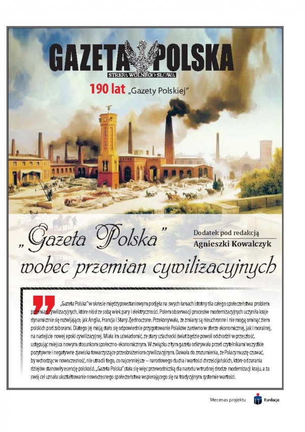„Gazeta Codzienna”, przybliżając swoim czytelnikom mit Ameryki jako ziemi obiecanej, podjęła się równocześnie jego weryfikacji, usiłując odsłonić prawdzie oblicze rozwoju cywilizacyjnego Stanów Zjednoczonych. Stała się również przewodniczką po wysoko rozwiniętych krajach Europy Zachodniej. Odkrywała wszystkie pozytywne i negatywne zjawiska, które niósł ze sobą postęp. Pozwalała wniknąć w problemy społeczne środowiska robotniczego Anglii, poznać słynne francuskie fabryki w Saint-Étienne, a nawet tajemnice Paryża z jego dzielnicami nędzy. Najważniejszą jej misją było jednak przygotowanie narodu na nadejście nowej epoki cywilizacyjnej i czuwanie, by w drodze ku nowoczesności pozostał wierny polskiej tradycji, religii i wielkiej przeszłości.
